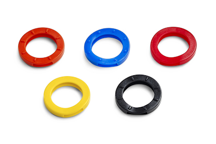 Håll ordning på dina nycklar med märkringar av plast. Ringen formar sig efter nyckeln. Sorterade färger. Sats innehåller 200 styck och SB innehåller 5 styck.