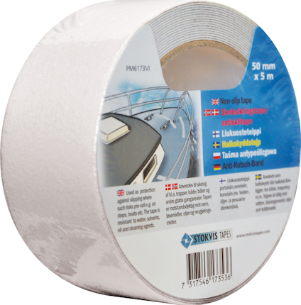 Halksdyddstejp som används som halkskydd överallt där det finns halkrisk tex trappsteg, båtar, ramper, lastbryggor osv. Finns i svart & vitt. 50 mm x 5 m. Läs mer