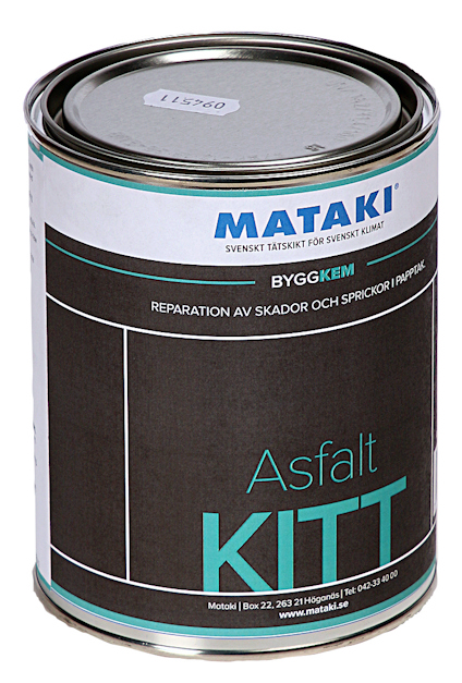 Fiberarmerad asfaltbaserad produkt i pastakonsistens. Används för reparation av papptak eller som fogfyllning inom och utomhus. Mataki Asfaltkitt fäster även på fuktiga ytor.