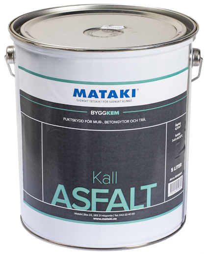 Asfaltbaserad flytande fuktskydd för byggnadens olika delar. Kan användas inom- och utomhus, ovan och under jord. Mataki Kallasfalt har god motståndkraft mot solljus och höga temperaturer och används med fördel vid fuktskydd av mur- och betongytor samt trä.