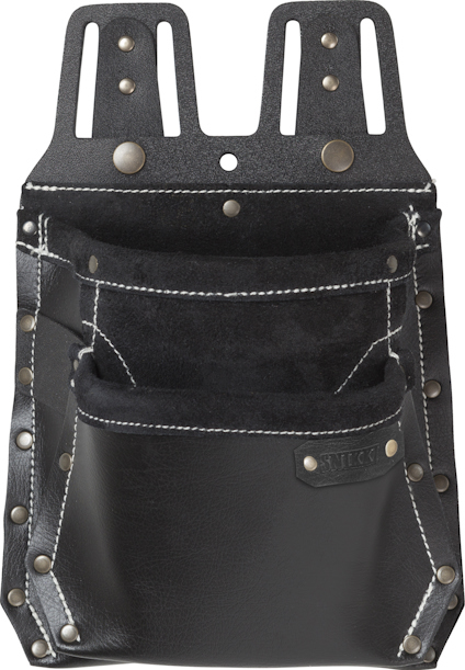 Snikki Materialficka 9304 LTHR 2 fickor för skruv, spik m m / Stor ficka 20x16x8 cm / Mindre ficka 13x14x4,5 cm / Knivhållare / Nitförstärkt / Quick-grip / Vattenavvisande / Tillverkad i Sverige.