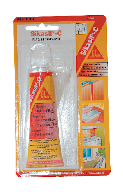 Våtrums- och byggsilikon Sikasil-C Högelastisk silikonfogmassa för allmänna byggändamål samt sanitetsändamål. MTK-godkänd. Innehåller antimögelmedel.