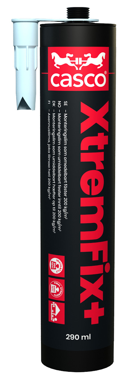 XtremFix+ passar för inom- och utomhuslimning av olika föremål så som stenar, tegelstenar, fönster och dörrkarmar, speglar, träbjälkar och tunga lister. Fogens ojämnhet kan vara flera millimeter. Extremt högt initialhugg. Justering möjlig första minuten. Hög hållfasthet, mekanisk resistent och E-modul. Mycket goda åldrande egenskaper och temperaturmotstånd. Ingen krympning och extremt bra fyllning av fogen.