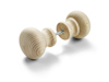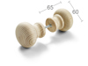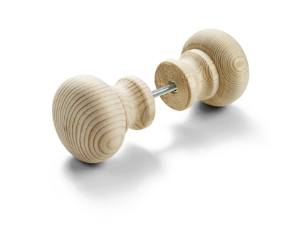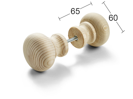 Bastuknopp av obehandlad furu för genomgående fastsättning. Maximal dörrtjocklek vid parmontering är 60 mm. Läs mer