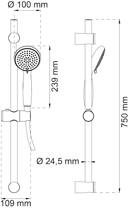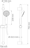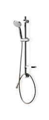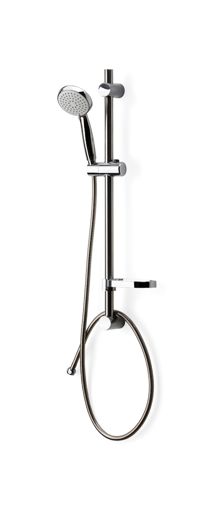 Duschset, komplett med handdusch, duschstång och slang. Handdusch med tre stråltyper, diameter duschhuvud 100 mm. Med antikalkfunktion. Rubber Clean-gummi på munstycket gör att det är enkelt att avlägsna kalk. 750 mm duschstång i krom, diameter 24 mm, med flexibelt övre fäste. Elastisk duschslang i rostfritt stål. 1500-2000 mm. Passar alla blandare och duschar, G1/2. Vattensparfunktion, 6,5 liter / minut. Använd de medföljande svarta packningarna vid installation. Får ej stå under konstant tryck.
