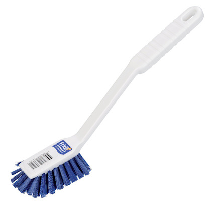 Diskborste Frida. Plastskaft med skrapa och polyester, tål hög värme.
