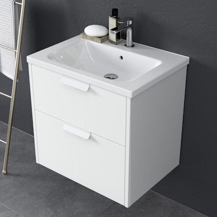 Tvättställ till GRAND kommod i äkta vitt porslin, det mest tåliga materialet som ett tvättställ kan bestå av. Läs mer