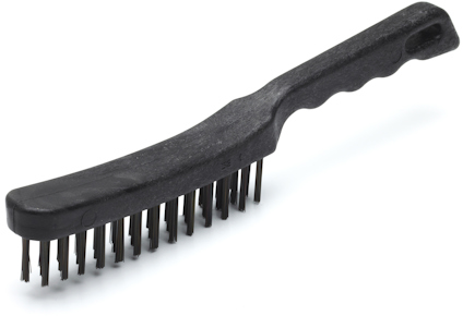 Stålborste med handtag i plast.
