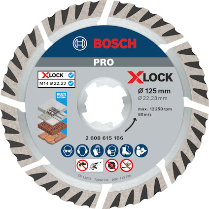 Tillförlitliga snitt - X-LOCK Standard for Universal diamantkapskiva är avsedd för pålitliga snitt i universalbyggmaterial. Dess optimerade diamant matris garanterar solida resultat tack vare skivans högkvalitativa standarder. Boschs diamantkompetenscenter i Schweiz garanterar dessa standarder genom att leverera konsekvent kvalitet om och om igen. X-LOCK kapskivor passar även på vinkelslipar av standardtyp. Det går snabbt och enkelt att byta kapskivor tack vare det nyckelfria X-LOCK-systemet. Klicka den på plats med X-LOCK – marknadens snabbaste system för byte av tillbehör. Passar även till vinkelslipar med mutter och gänga.