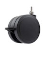 Svängbart dubbelt möbelhjul. Med gängad tapp M10 och med hjulbroms. Hjul av plast, bana av polyuretan (PUR). Ø 75 mm. Maxbelastning per hjul 55 kg (beräknat värde, garanteras inte). Kan även användas till bordsben 511 och 611. Läs mer