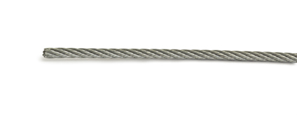 Wire av elförzinkad ståltråd. Längd 10 meter. Wirens konstruktion anges enligt AxB+C, där A är antalet kardeler, B antalet trådar per kardel och C beskriver kärnan (FC=fiberkärna). Denna wire har konstruktionen 6x7+1FC, och den har alltså sammanlagt 42 trådar. Maxbelastning 40 kg (beräknat värde, garanteras inte). Brottgränsen, när materialet brister, är för vår wire 6 gånger angiven maxbelastning.