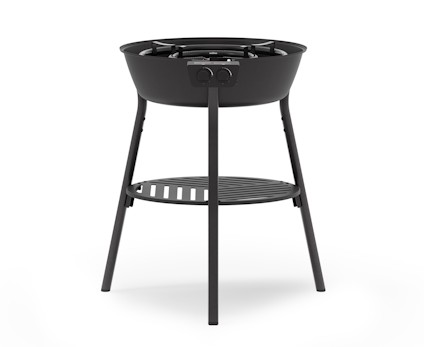 Emaljerad gasolbrännare med två gasolringar och ett stadigt stativ i metall med korta ben i D-profil. Gasolbrännaren har vred med integrerad tändning och tydlig markering som gör det lätt att veta hur mycket värme som fördelas över hällen. Värmen regleras individuellt på de två gasolringarna, vilket möjliggör olika temperaturzoner på hällen. Gasolbrännaren har ett fast vindskydd som effektivt skyddar lågorna, vilket är perfekt för att komplettera din befintliga stekhäll eller kombinera med en universalpanna, wok, paellapanna eller liknande tillbehör. Den har en effekt på 14,6 kW och en gasförbrukning på 1043–1062 g/h. Arbetshöjd 90 cm.