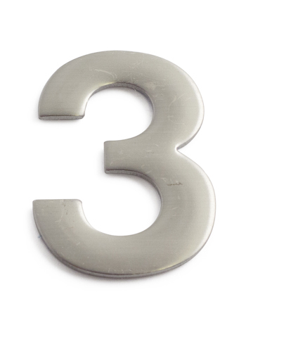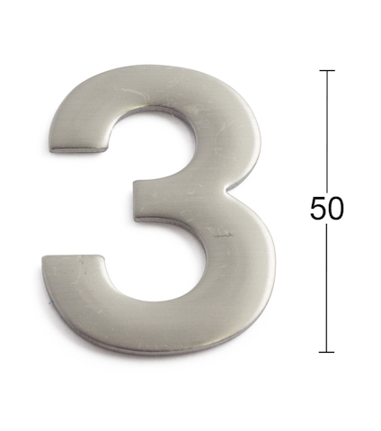 Siffra 3 av rostfritt stål. För markering av husnummer, brevlådor osv. Självhäftande 3M-tejp som fäster på de flesta underlag, som stål, glas, plast, brevlådor osv. Höjd 50 mm, tjocklek 3 mm.