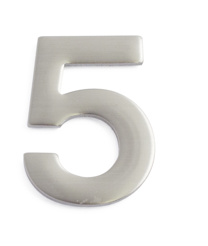 Siffra 5 av rostfritt stål. För markering av husnummer, brevlådor osv. Självhäftande 3M-tejp som fäster på de flesta underlag, som stål, glas, plast, brevlådor osv. Höjd 50 mm, tjocklek 3 mm.