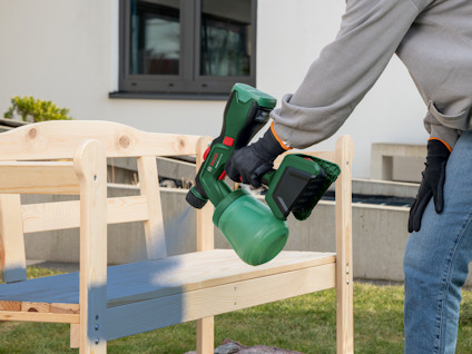 Sprutpistol; UniversalSpray 18V-300; Batterispänning: 18,0 V; Färgpåföring: 2 m² på 1 min; Behållarvolym: 1,20 L. Mångsidig och kraftfull sprutning av alla typer av färg. Ett praktiskt ALLPaint-munstycke för sprutning av lack, färg och liknande. Perfekta resultat med trä- och väggfärg tack vare justering av luftvolymen. Bärbar ALLPaint-färgspruta Läs mer
