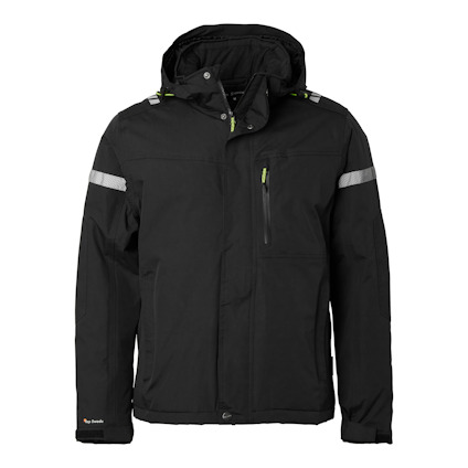 Vind- och vattentät vinterjacka med tejpade sömmar, fodrad med quilt och material som ger värme och ventilation. Bröstficka med vattentät dragkedja, innerficka och napoleonficka. Löstagbar huva, reflexdetaljer, reglerbart ärmslut och nederkant. Läs mer